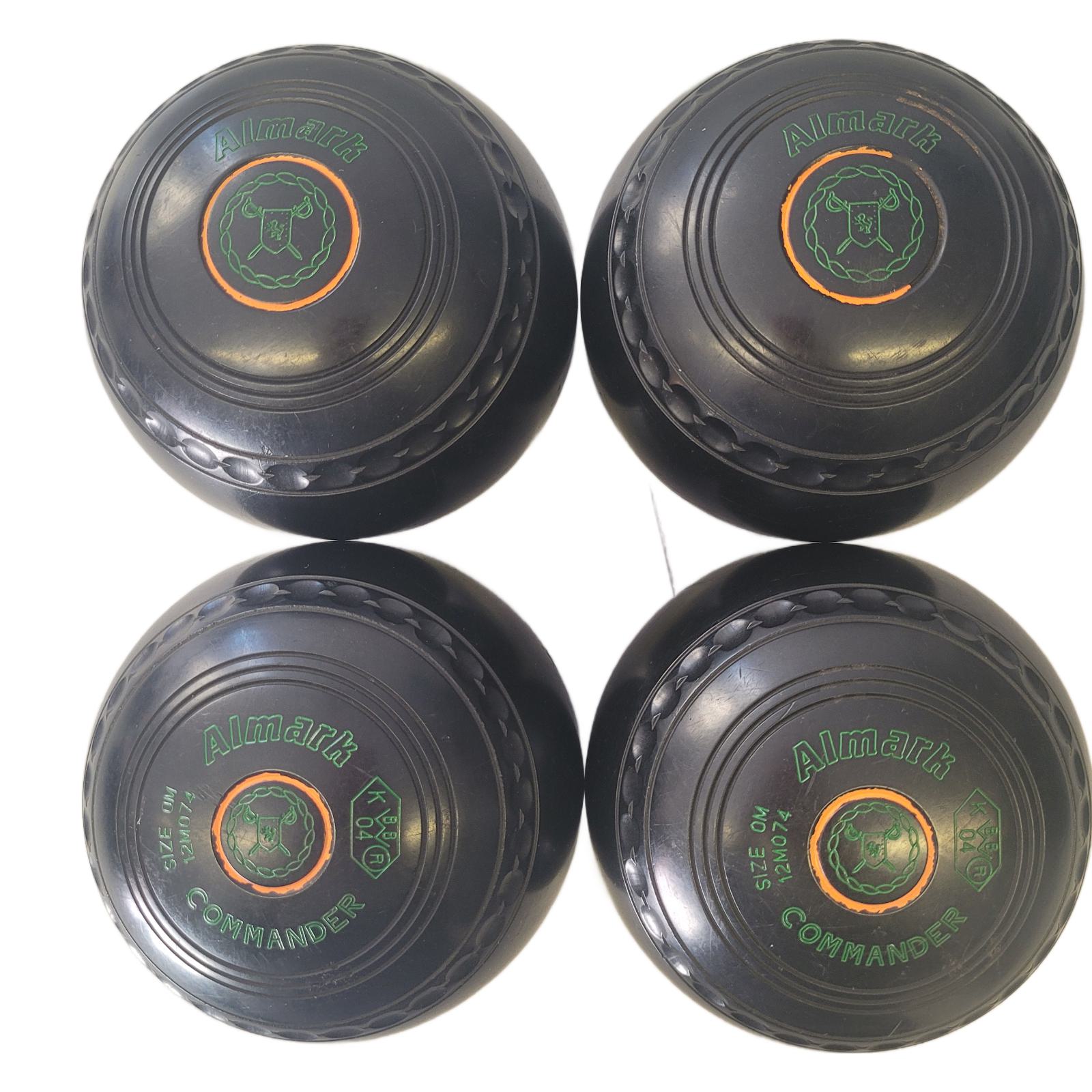 This bowls have a wide draw, with an even arc back to centre, suitable for outdoor bowling. They have the square grip, They are in fair cond. some scuffs as to be expected with this age bowl, hence price. stamped '04 . This Price is for a set of 4 bowls. Price includes postage in Uk Mainland.